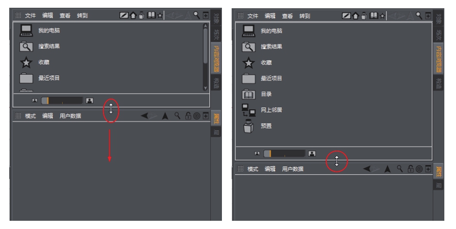 当然,这种操作不仅是针对视图的调整,对于管理器面板的大小和位置也可以通过此方法进行操作,如图1-37所示。