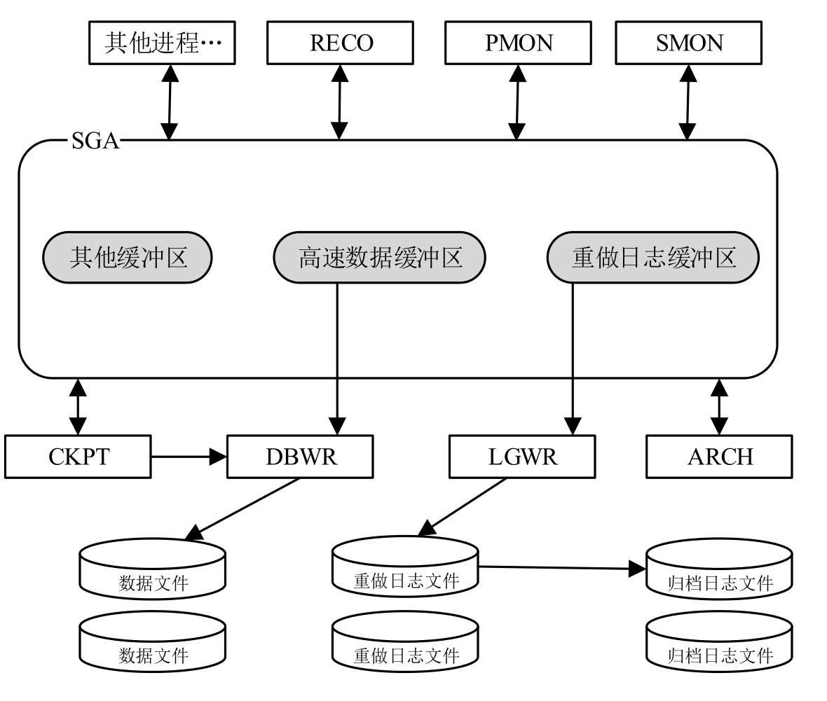 2.3节已经对数据库的3种物理文件进行过详细讲解,本节主要对实例、程序全局区和前台进程进行详细的讲解。