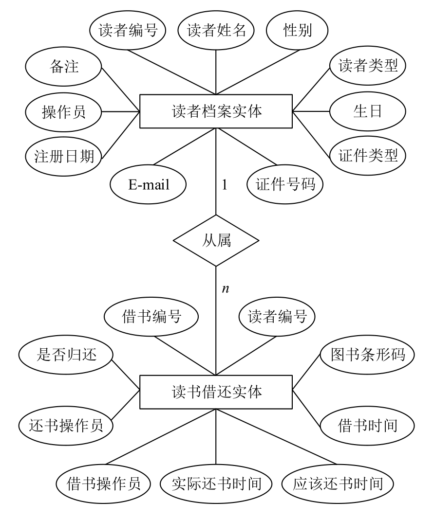 图1.3 “读者档案实体”与“读者借还实体”之间的联系