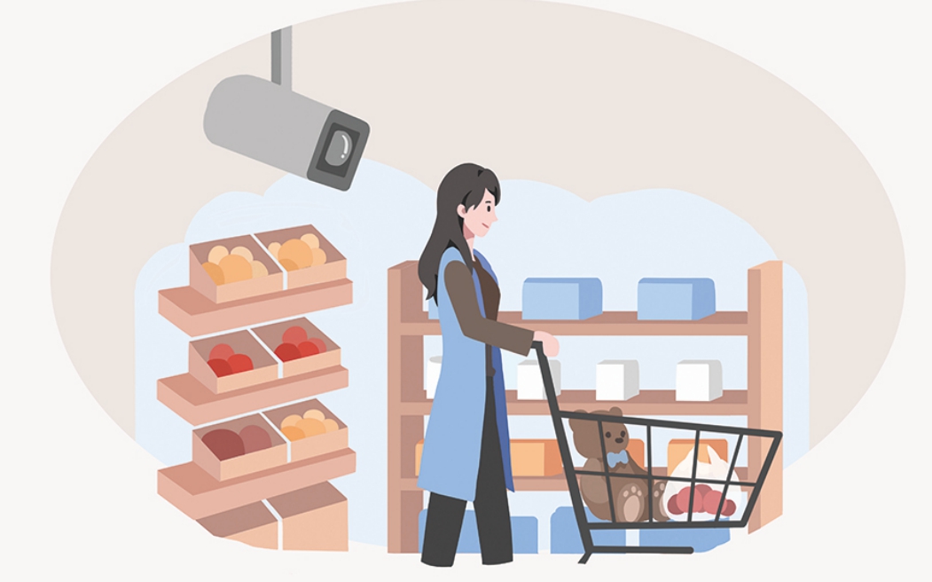 某连锁线下生鲜超市在门店的顶棚安装了多个作用不同的摄像头。通过这些摄像头,能够便捷地抓取超市的顾客流量、顾客分布、区域停留时间、行动路线等内容,帮助超市更好地调整商品位置、区域面积等设计,让超市能够感知用户的行为并随时调整自己。