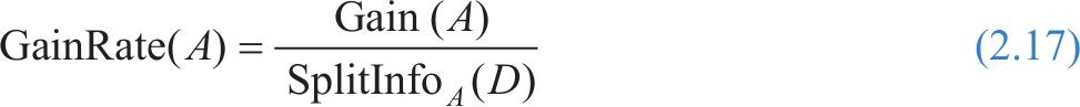 随后出现的C4.5方法使用的增益率度量,就是基于这样的想法产生的,作为信息增益度量的补充,试图克服这样的偏向性。它使用“分裂信息”的概念将信息增益规范化,分裂信息的定义如下:
