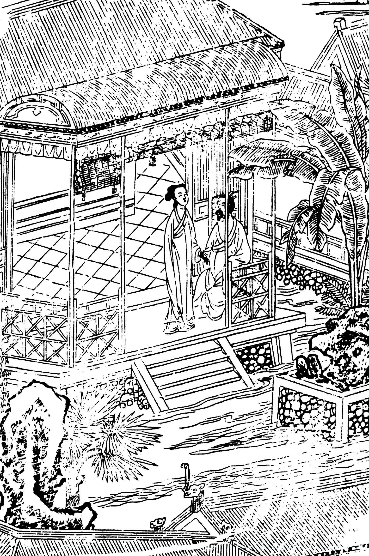 “小晕红潮,斜溜鬟心只凤翘。”四目对接,那女子娇媚的脸庞泛起淡淡红晕,正是对容若最直白的心事倾诉。少女情怀总是春,是藏不住的,那娇羞的红晕便泄露了一颗心、多少事、几番情。容若仿佛又想起了少年时代吟诗弄琴、两心相依的往事,那是一段最为快乐的时光,犹如一场醉人春梦。大概是因为被看穿了心事,女子显得越发慌乱,那斜插在云发间的凤钗也随之滑落下来。