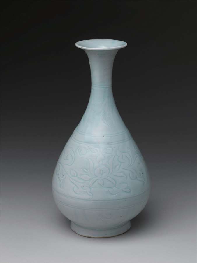 青瓷也不是某一种瓷器,而是一类瓷器。它是陶瓷史上历史最悠久的瓷器。如果把瓷器的历史比作修行的话,我们就可以理解为青瓷在人间经历了上千年的修行,是迄今修行最久的瓷。我们耳熟能详的很多著名的古代窑口,它们烧制的都是青瓷。比如著名的唐代秘色瓷,所谓“秘色”其实只是一种青灰色;宋代的汝窑、官窑、哥窑等等,都是青瓷。甚至历史上朝鲜也烧制青瓷,而且有一段时间水准非常高,完全可以和宋瓷相媲美。