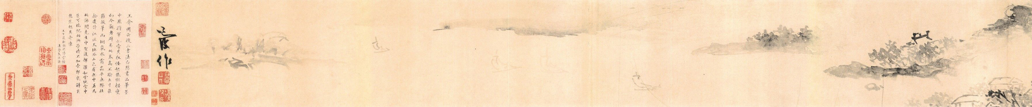《云山图卷》,纸本墨笔,纵14.8厘米,横247.2厘米,未系年,今藏于北京故宫博物院。