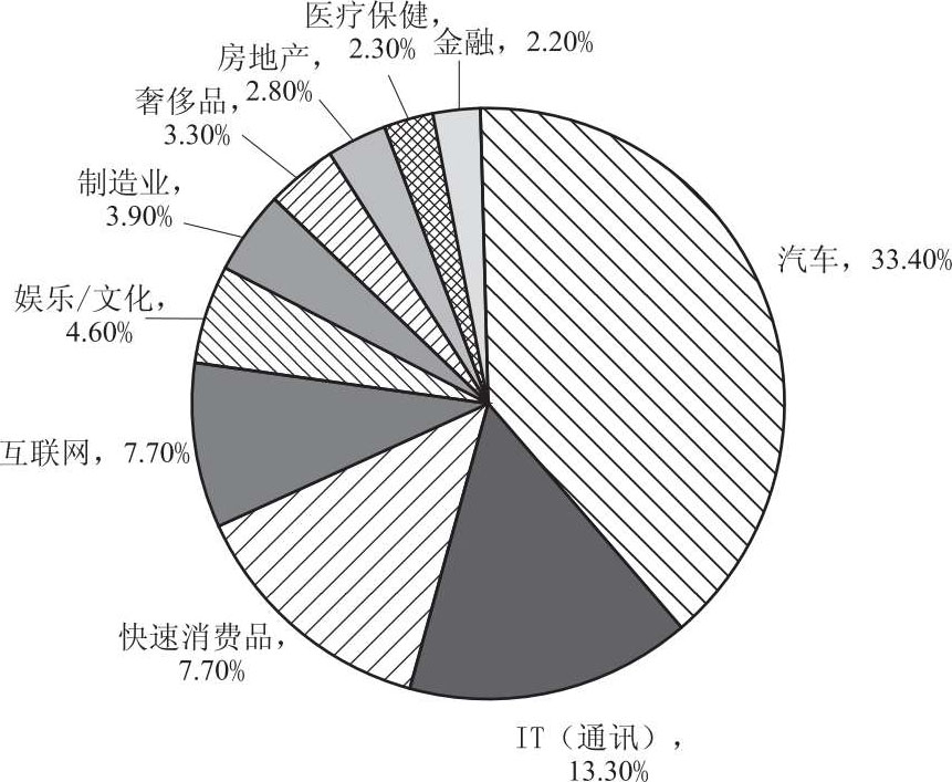(1)汽车、IT(通信)、快速消费品继续占据市场前 3位。