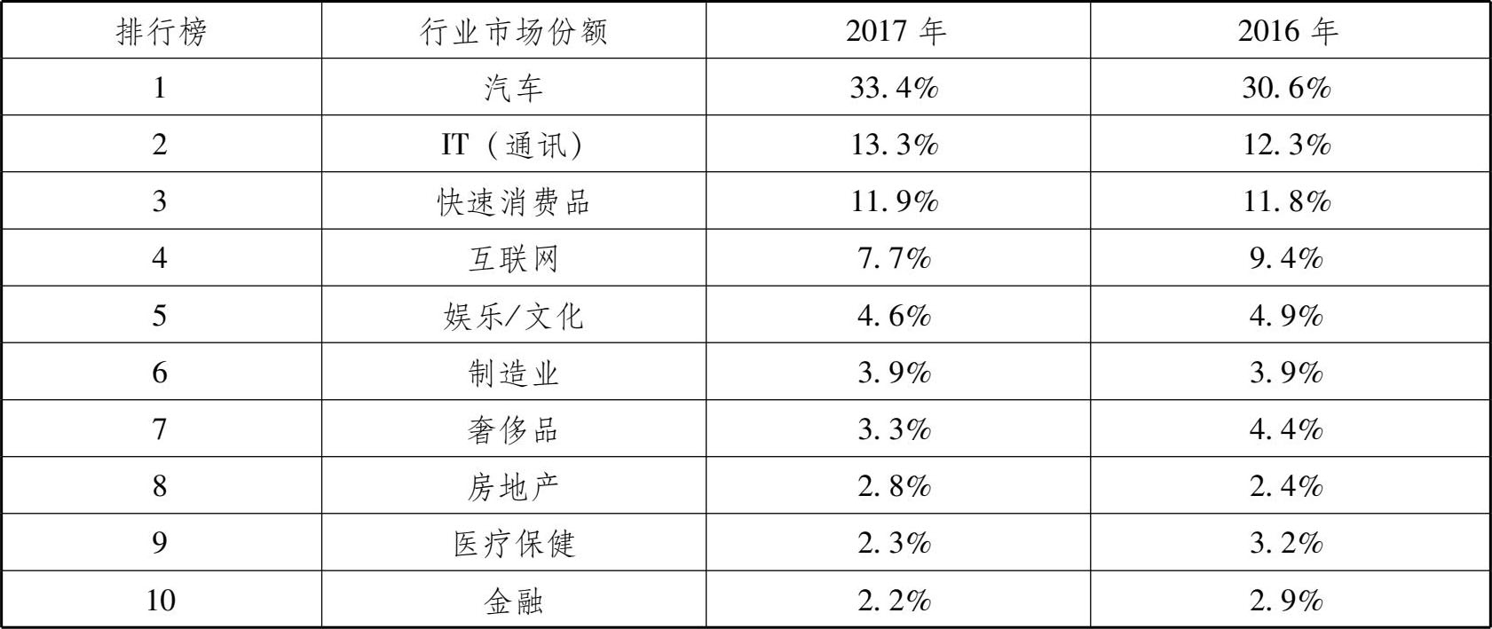 (3)跨界融合进入新阶段。行业的跨界融合与合作已成为新常态。2017年,公共关系与广告、营销行业的跨界融合开始提速,目前已形成行业之间优势互补、相互渗透的竞争格局。