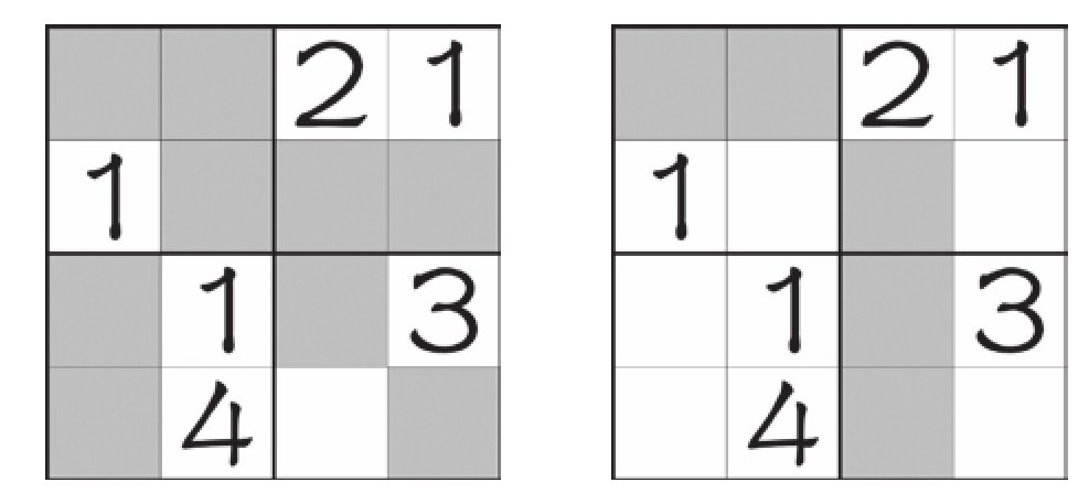 或者,我们可以观察数字2(见右下图),用同样的思路得到B2=2,D4=2。