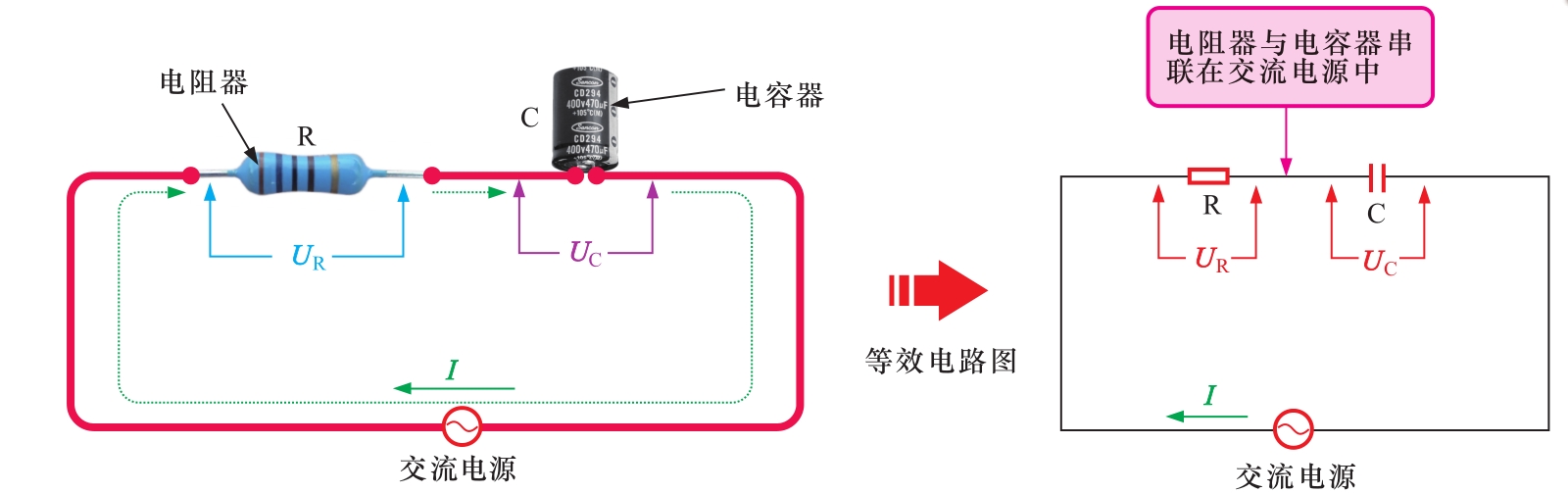 电阻器和电容器串联后“构建”的电路称为RC串联电路。该电路多与交流电源连接,如图1-19所示。