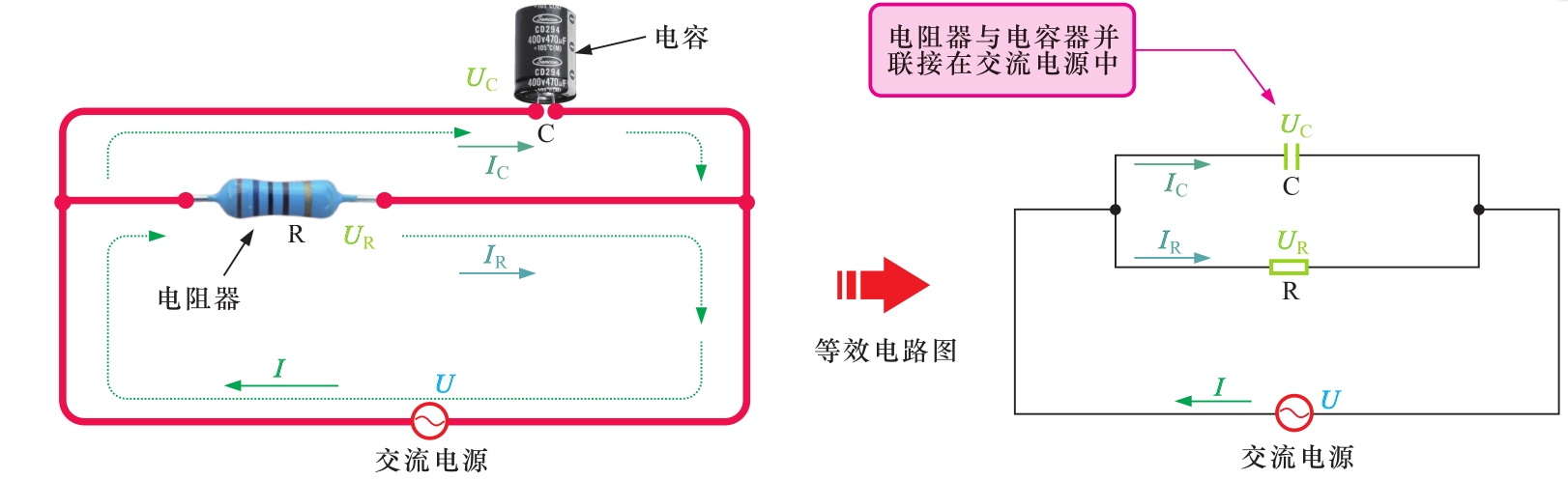 电阻器和电容器并联于交流电源的组合电路称为RC并联电路,如图1-27所示。