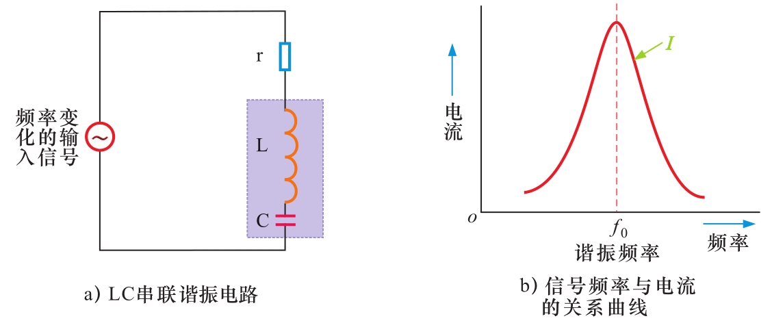 图1-20 LC串联谐振电路及电流和频率的关系曲线