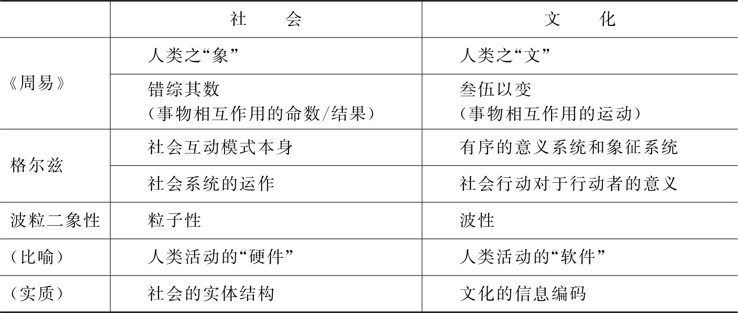 表2 《周易》/格尔兹/波粒二象性的社会-文化释义
