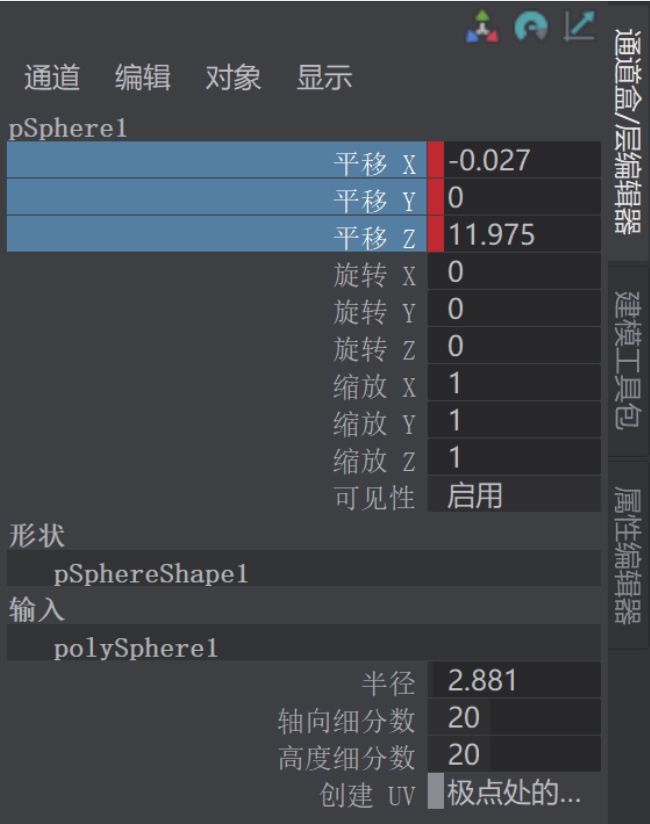 01 启动Maya软件,在场景中创建一个多边形球体模型,如图1-20所示。