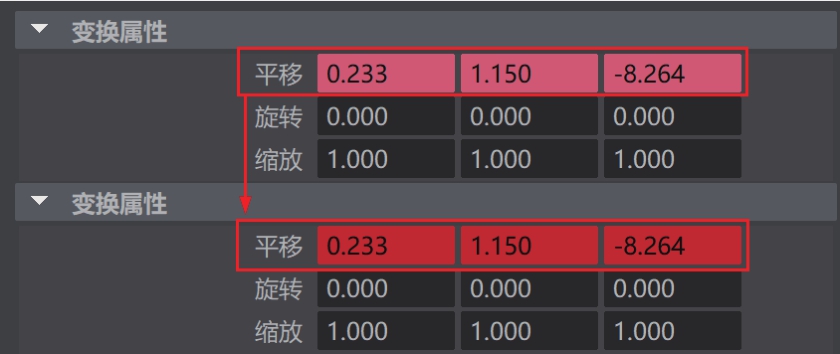 05 再次在“属性编辑器”面板中对“平移”属性设置关键帧。设置完成后,可以看到已经设置了关键帧的数值,其背景色由浅红色变为了红色,如图1-12所示。