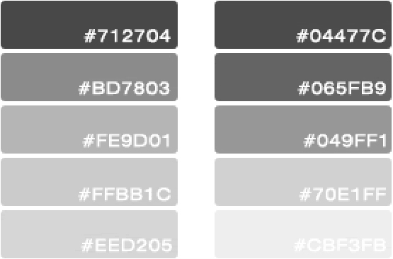 明度也称为亮度,指的是色彩的明暗程度,明度越大,色彩越亮。如一些购物、儿童类网站,用的是一些鲜亮的颜色,让人感觉绚丽多姿、生气勃勃。明度越低,颜色越暗,主要用于一些游戏类网站,充满神秘感;一些个人网站为了体现自身的个性,也会运用一些暗色调来表达个人的孤僻、忧郁等性格,如图3-8所示为色彩的明度变化。