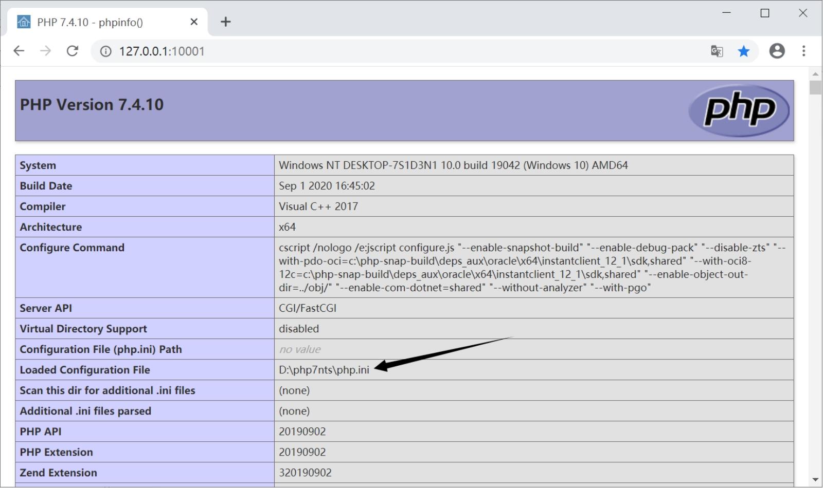 phpinfo();