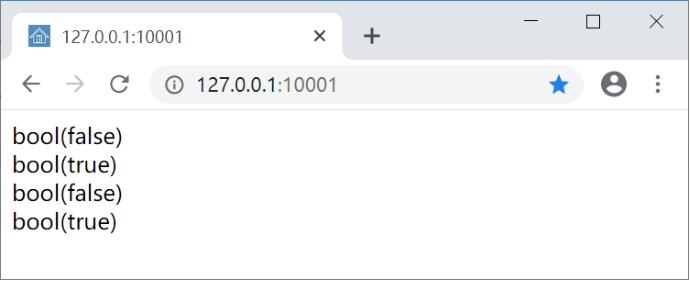 var_dump(!$x);