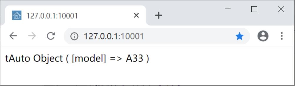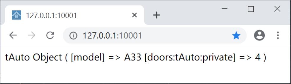 再次通过print_r()函数查看tCar对象的信息,只会看到model属性的值,见图6-6。