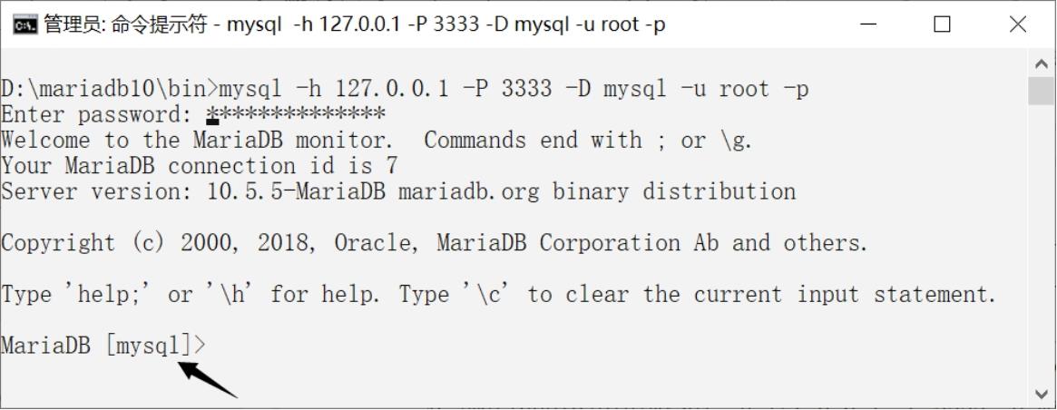 操作MariaDB数据时,可以使用mysql命令启动客户端命令行工具,如下面的命令。
