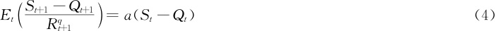 (2)央行的货币政策除考虑预期的通货膨胀外还考虑股价。在通货膨胀目标制下,资产价格的非预期变动将影响中央银行的通货膨胀预期。这是因为资产价格的迅速上升会带来财富效应,从而刺激消费需求,间接推动价格指数上升,因而关注资产价格在逻辑上是成立的。在这种情况下,伯南克和格特勒将式(7)做了一下变化: