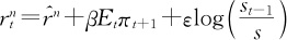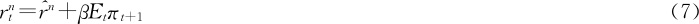 其中, β 总是大于1,这样当预期通货膨胀率变动一个百分点时,央行提高名义利率的幅度就超过一个百分点,这就能保证在预期通货膨胀率提高时实际利率也相应提高,起到稳定经济的作用。
