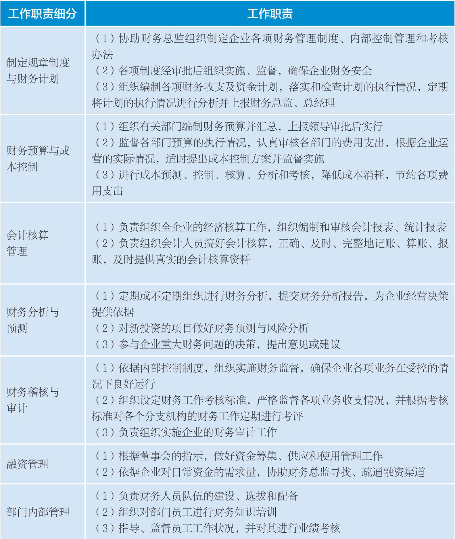 财务经理的工作职责如表1-4所示。