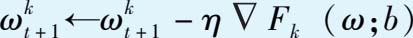 对每次训练 j =1,…, E ,使用∀ b B k ,更新局部模型参数: