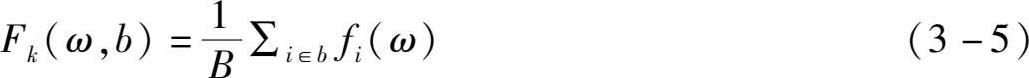 其中, B 是批样本大小(Batch Size); b P k ,是参与方 k 的数据索引集 P k 中由 B 个样本组成的一个批次; f i ω )是样本( x i y i )在参数 ω 下的目标值,一般取 f i ω )= l x i y i ω )为某个损失函数,表示样本( x i y i )在参数 ω 下的损失函数值。