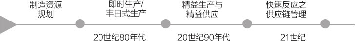 供应链管理经历了从原始到现代,从粗略化管理到精益化管理,从被动式管理到主动式响应市场需求的变化过程。反观最初的供应链管理的要求——只要能买到货、只要能交得出货,如今的供应链管理水平已经变得越来越高,反应速度也越来越快;相应地,企业对供应链管理的要求也变得越来越严格。供应链管理的发展历程如图1.1-1所示。