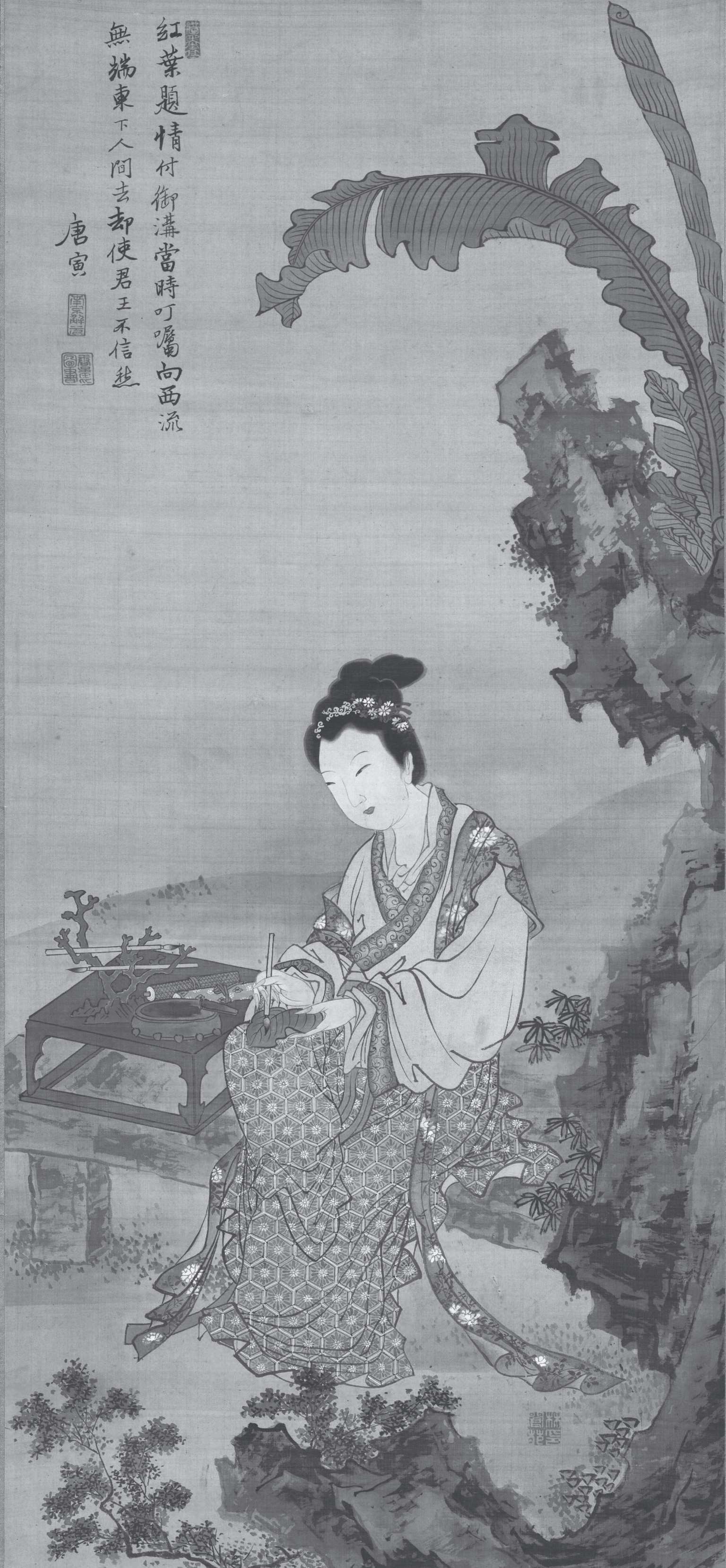 ·图1-3 明·唐寅款《红叶题诗仕女图》