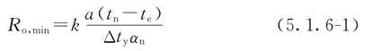 5.1.6 除外窗、阳台门和天窗外,设置全面供暖的建筑物,其围护结构的最小传热阻不得小于按下列公式计算所得值: