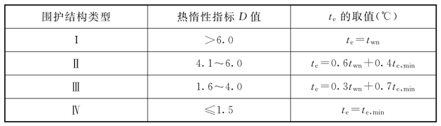 t e ——冬季围护结构室外计算温度(℃),按表5.1.6-2采用;
