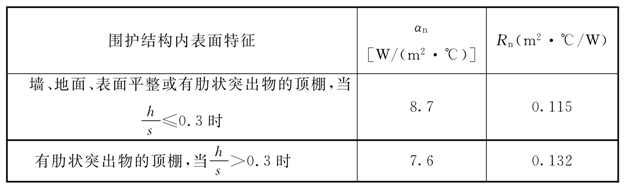 表5.1.6-5 内表面换热系数 α n 和换热阻值 R n
