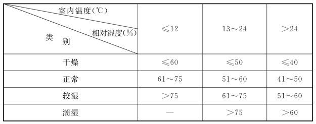 注:1 室内空气干湿程度的区分应根据室内温度和相对湿度按表5.1.6-6确定。