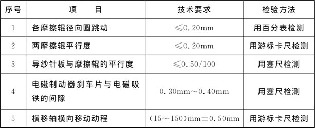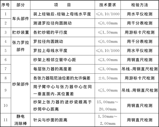 表4.2.1 分段整经机部件安装的技术要求和检验方法