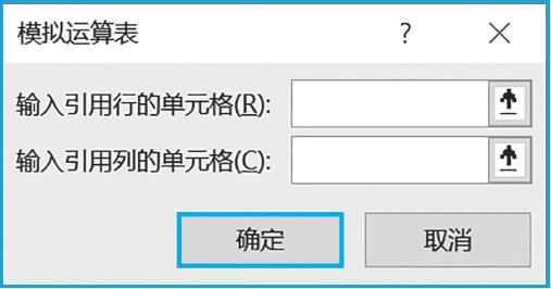 随后,选中表中数据并点击“数据”→“模拟分析”→“模拟运算表”(见图2-20)。