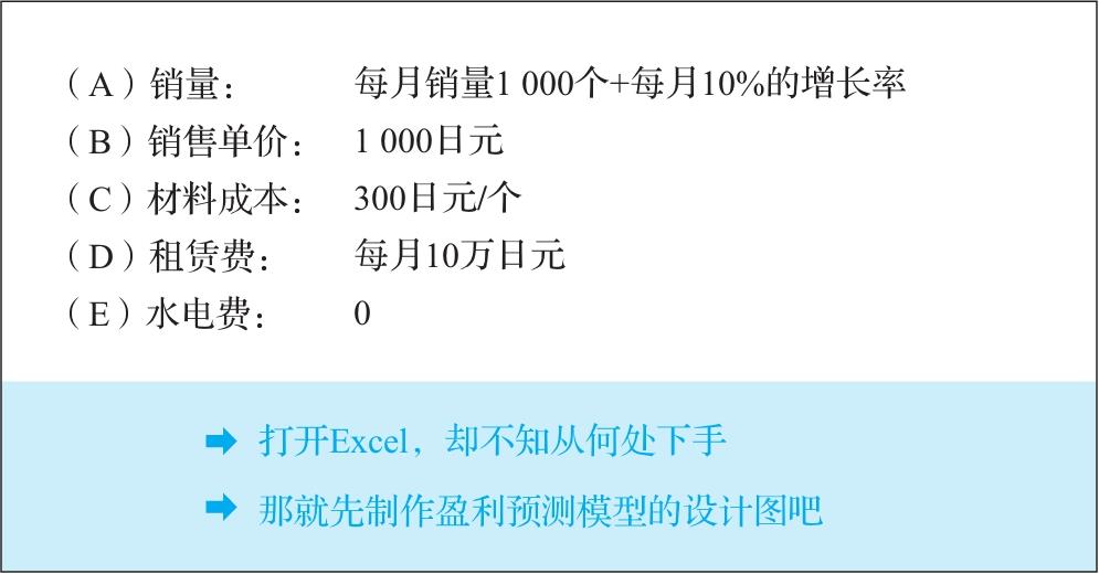 拿到图1-1中的数据,如果能立刻用Excel制作出盈利预测模型是最好不过的了,但苦于“无从下手”的人估计不在少数。