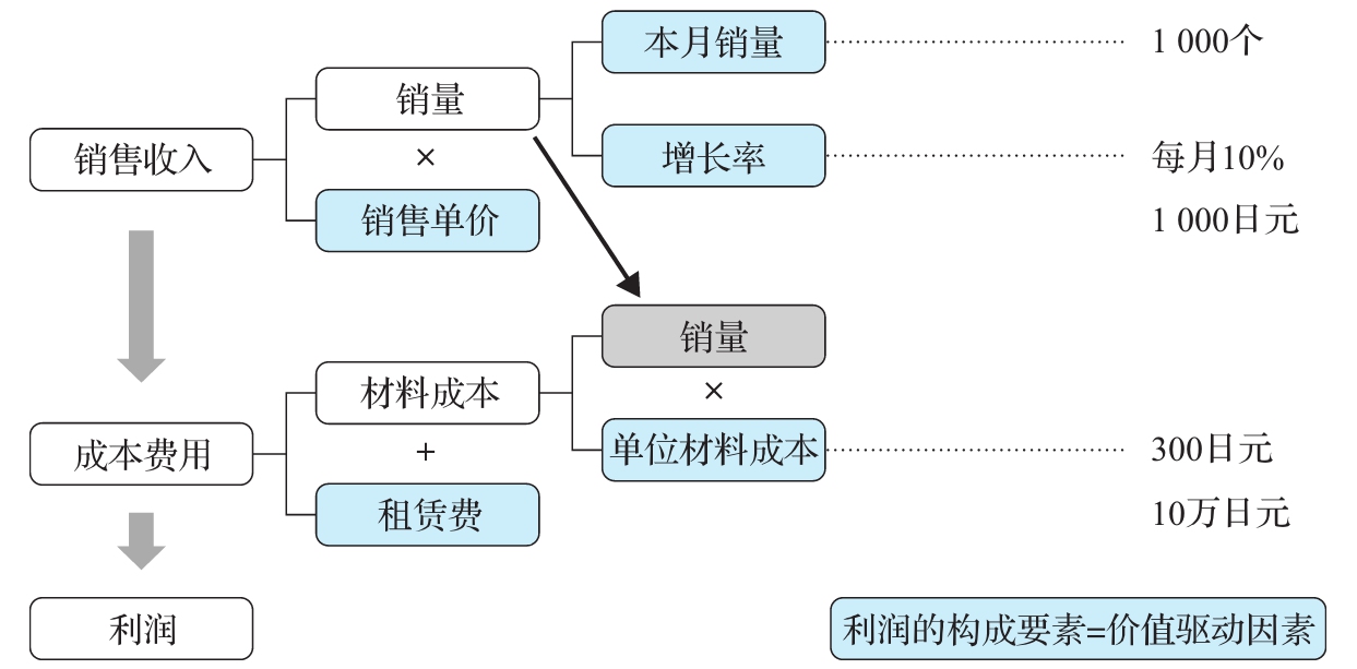 其次,设计图中要体现数字间的关联性。具体内容在第3章详细介绍。简而言之,要想提高模拟的精确度,准确判断“数字间的关联性”极其重要。如果判断失误,盈利预测的准确性将大大降低。