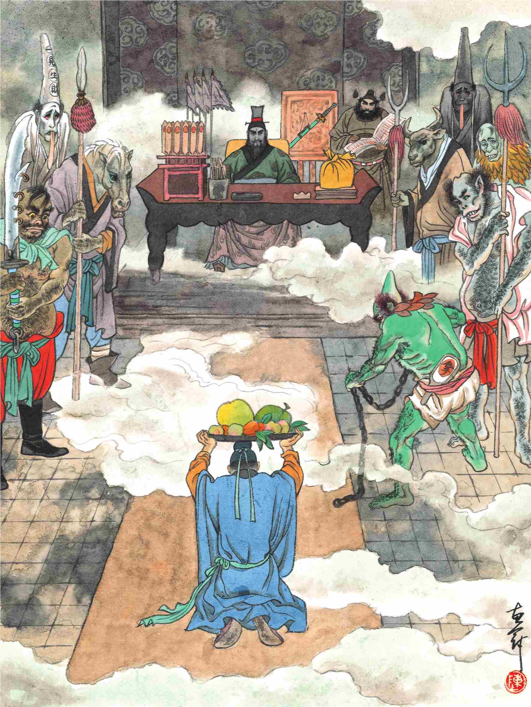 后来众人推举玄奘法师,即当朝总管殷开山外孙,状元郎陈光蕊之子,在化生寺聚集众僧一千二百名,分派上中下三堂,于本年九月初三黄道吉日开做七七四十九日“水陆大会”。