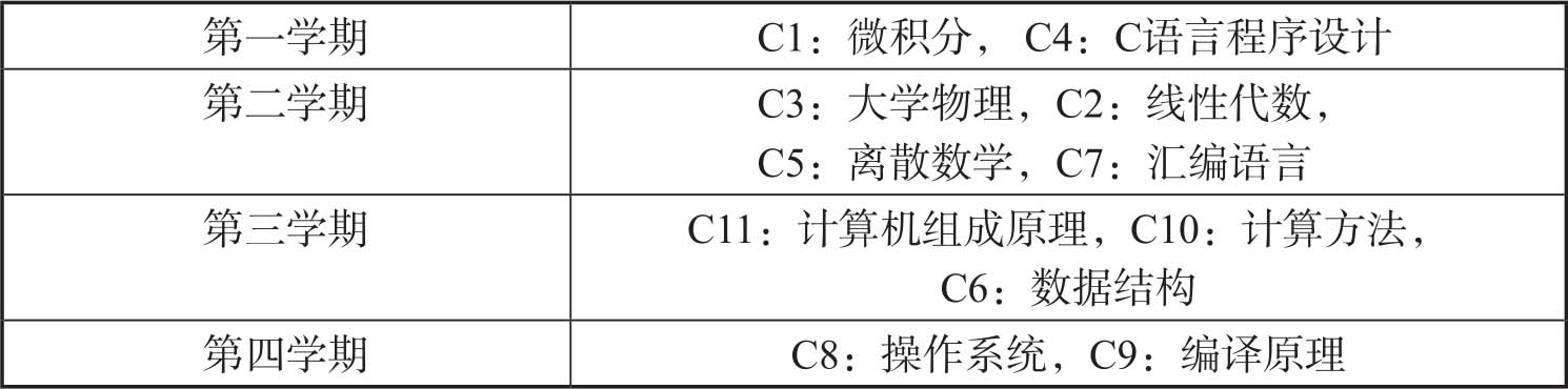 表1-4 计算机专业必修课排课方案