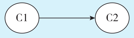 该图清晰地表达了课程“线性代数(C2)”和课程“微积分(C1)”之间的关系——C2依赖于C1,即C1是C2的先修课程。用这样的表示方法将全部课程的关系表示出来就构成了计算机专业必修课的AOV网。