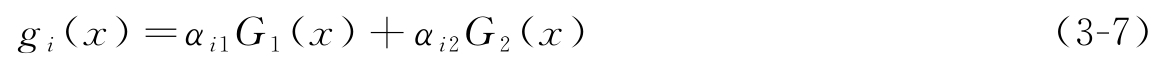 假设多目标优化函数为 G ( x )=[ G 1 ( x ), G 2 ( x )],通过二维权重系数 α i =( α i 1 , α i 2 )将原多目标问题划分为多个单标优化问题。其中 α i 1 是目标函数 G 1 ( x )的权重系数; α i 2 是目标函数的权重系数。于是,分解后的单目标优化问题的函数可表示为: