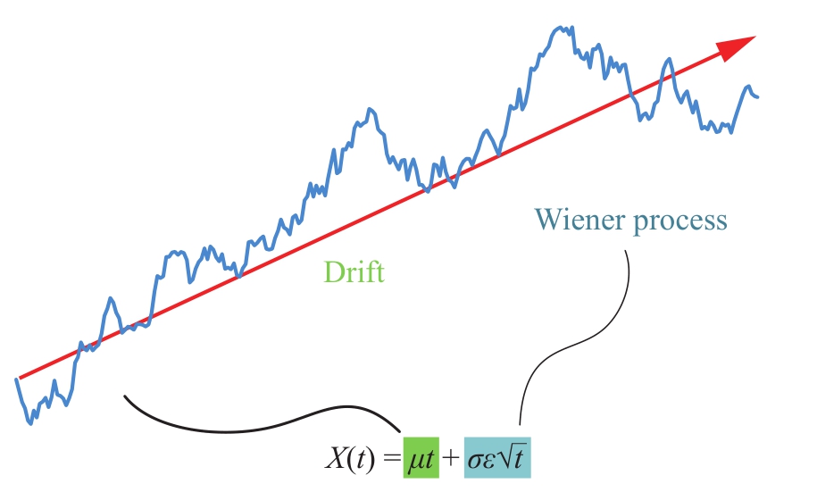 广义维纳过程是维纳过程与另一个漂移率恒定过程的叠加,其数学表达式为: