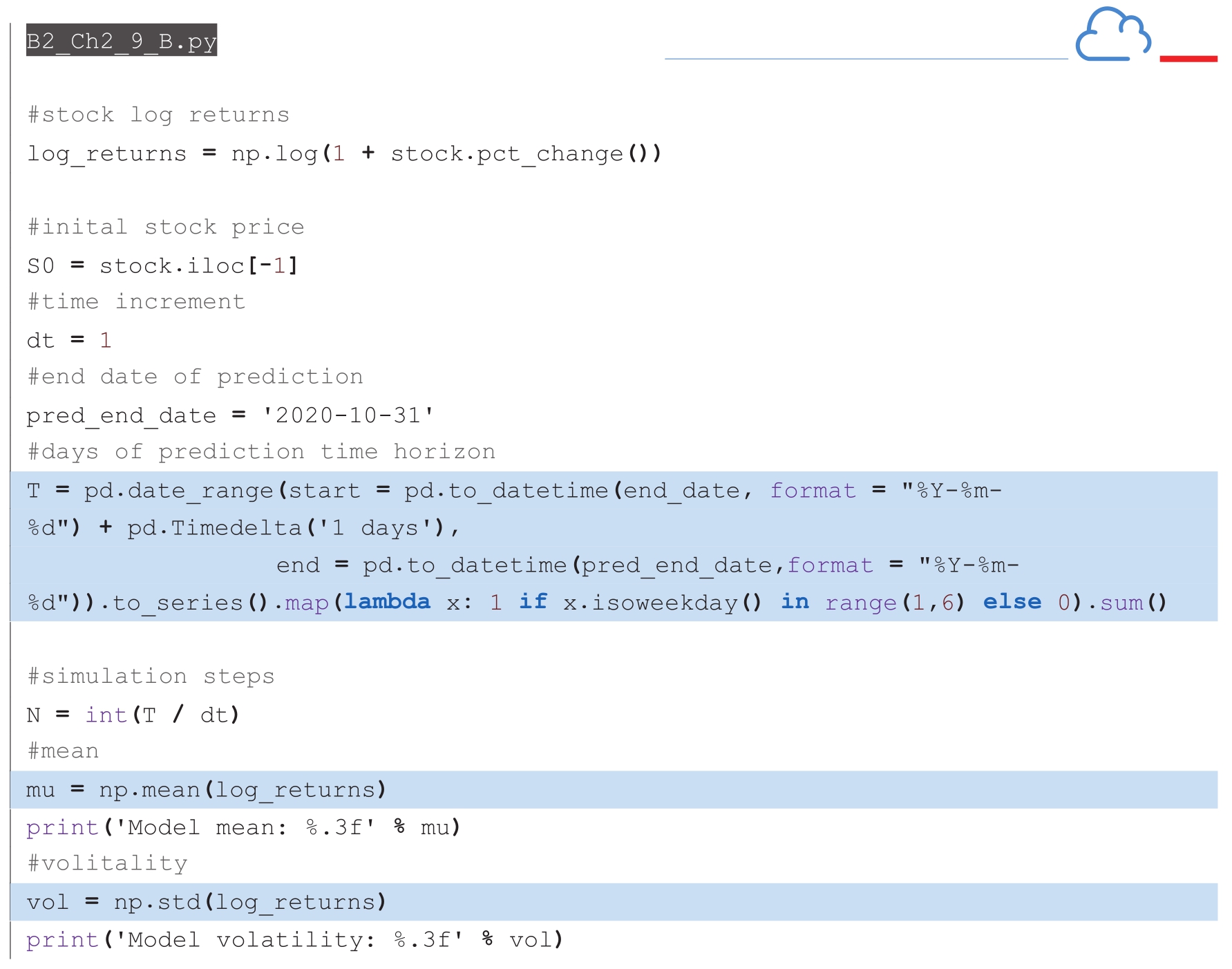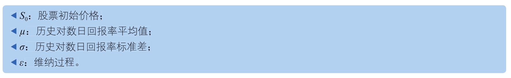 利用前面推导出的几何布朗运动的公式,建立模型,可以对股票价格进行预测。模型需要的参数如下所示。