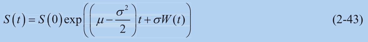其中, W t 为维纳过程(布朗运动),等号右边第一项包含为常数的漂移率 µ ,反映了模型的确定性的走势;后面一项包含亦为常数的波动率 σ ,反映了模型中随机不确定性的部分。