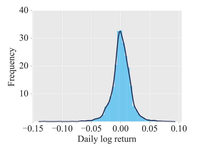 图3-9 苹果公司(AAPL)股票日对数收益率的分布