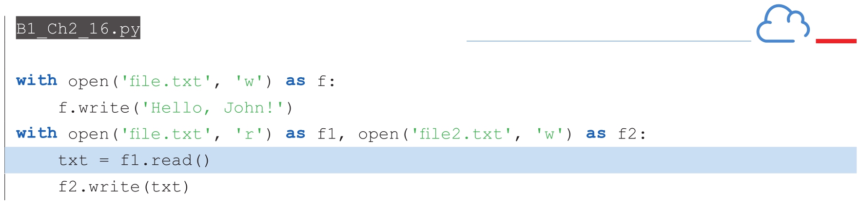 Python还提供了with open()as的文件操作方式,用来帮助用户关闭文件对象。with和as均是关键字。当用户使用with open()as方式打开文件后,该文件对象会被创建并打开,在完成一些用户指定的读写操作后,Python会自动关闭该文件对象,这样可以避免用户忘记显示关闭对象。