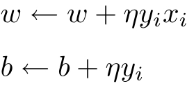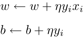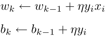 随机选取一个误分类点( x i , y i ),对 w , b 进行更新: