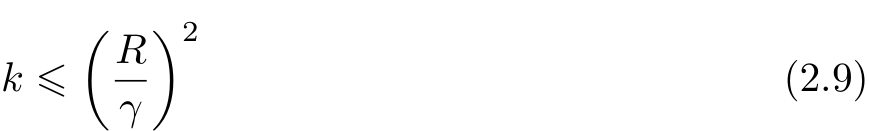 定理2.1(Novikoff) 设训练数据集 T ={( x 1 , y 1 ),( x 2 , y 2 ),…,( x N , y N )}是线性可分的,其中 x i ∈ X = R n , y i ∈ Y ={−1,+1}, i =1,2,…, N ,则
