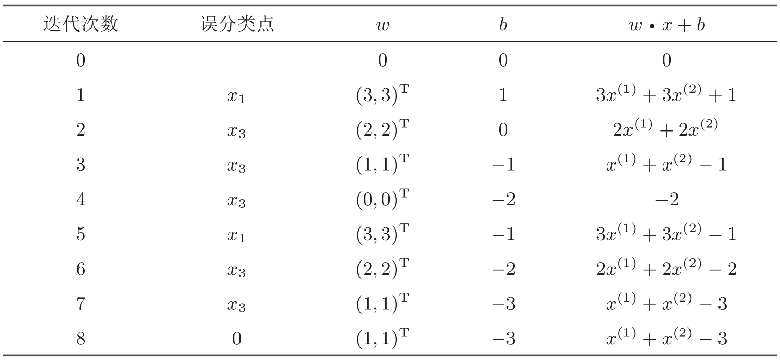 (4)转至(2),直至训练集中没有误分类点。