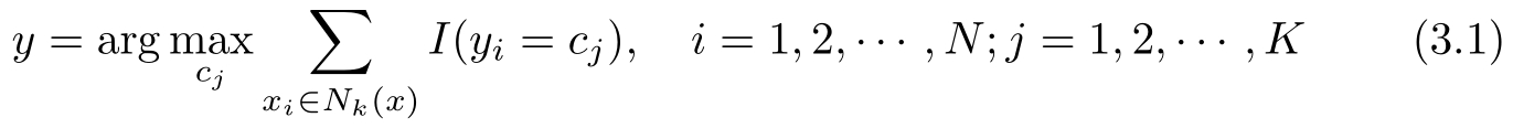 (2)在 N k ( x )中根据分类决策规则(如多数表决)决定 x 的类别 y :